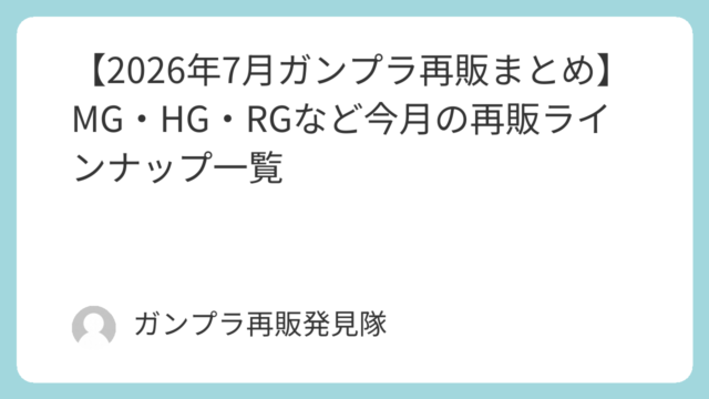 2026年7月のガンプラ再販スケジュールを一覧で紹介。MG・HG・RG・ENTRY GRADEなど、今月再販される人気キットをまとめました。再販日や注目アイテムをチェックして、買い逃しを防ぎましょう。