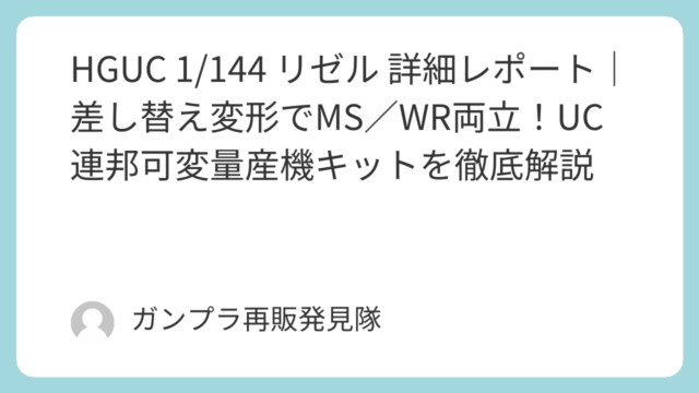 HGUC 1/144 リゼルを徹底レビュー。可動・変形ギミック・色分け・合わせ目・塗装ポイントまで詳しく解説。UC連邦量産可変機HGの魅力と注意点をまとめました。
