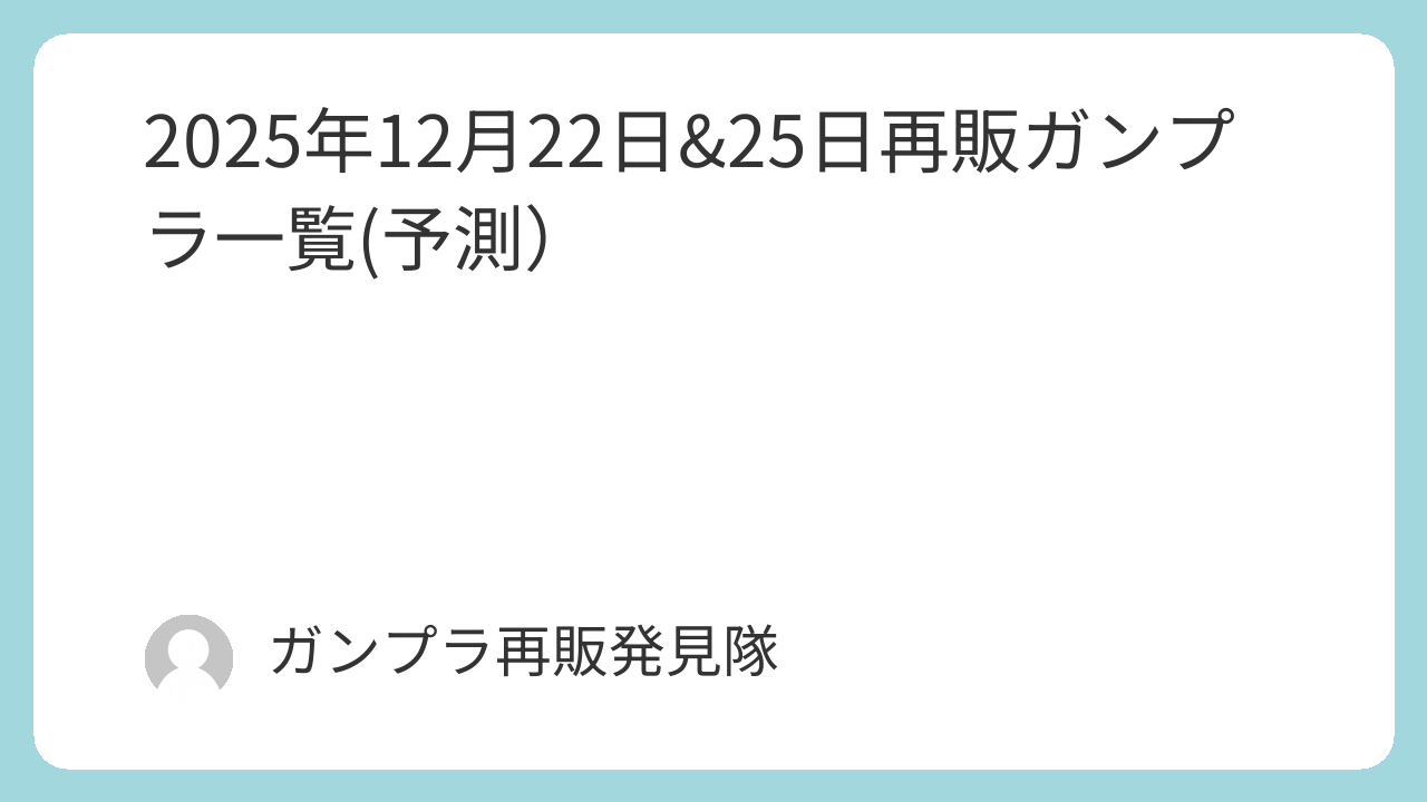 2025年12月22日&25日再販ガンプラ一覧(予測)