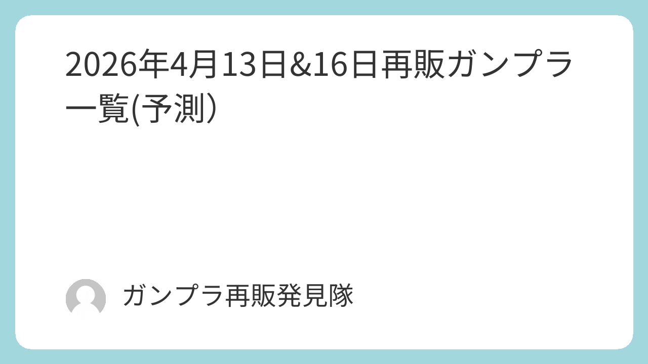 2026年4月16日再販ガンプラ一覧(予測)