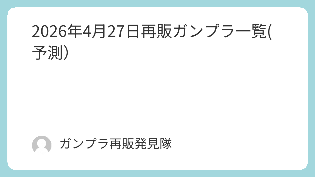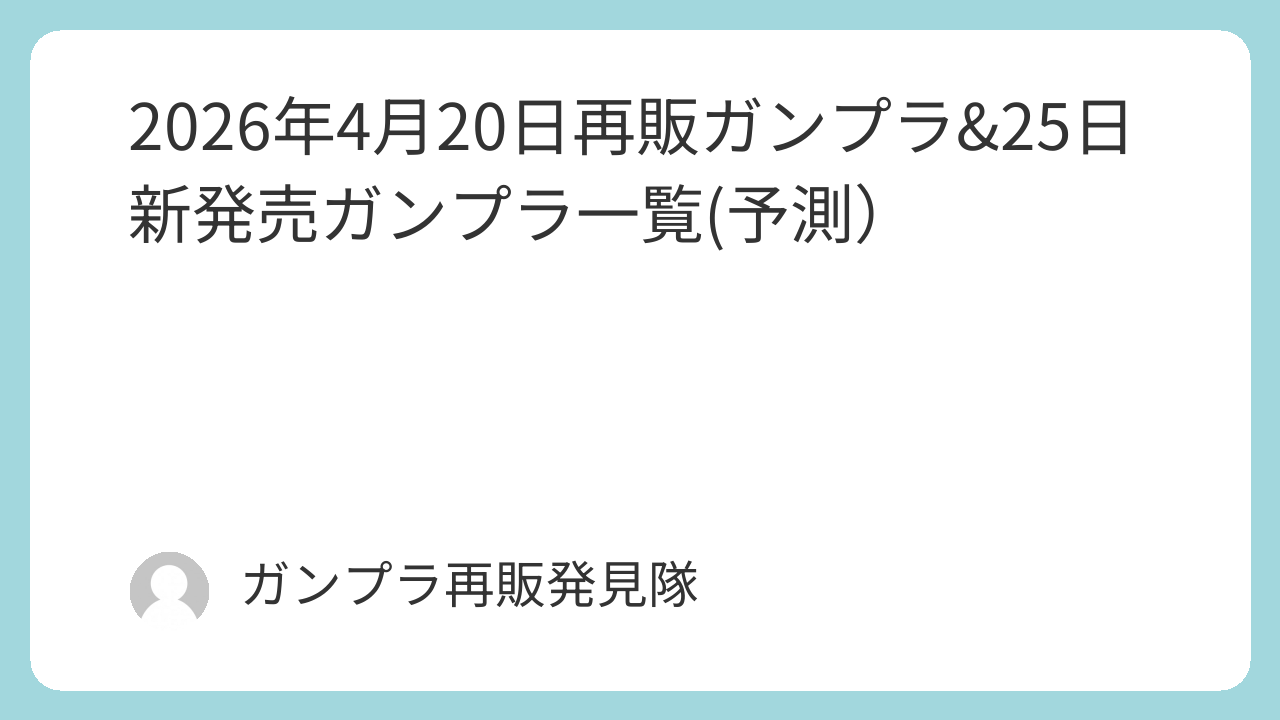 2026年4月20日再販ガンプラ一覧(予測)
