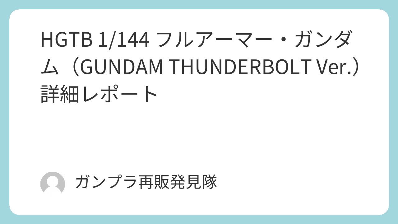 HGTB 1/144 フルアーマー・ガンダム(GUNDAM THUNDERBOLT Ver.)は、サンダーボルトシリーズの中でも「重装備×可動×造形美」が高次元で融合した傑作キットです。