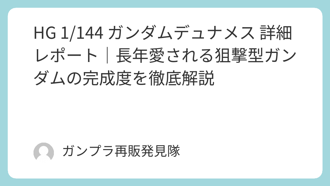 本記事では、HG 1/144 ガンダムデュナメスについて、プロポーション・可動・色分け・付属品・塗装適性まで徹底的にレビュー。