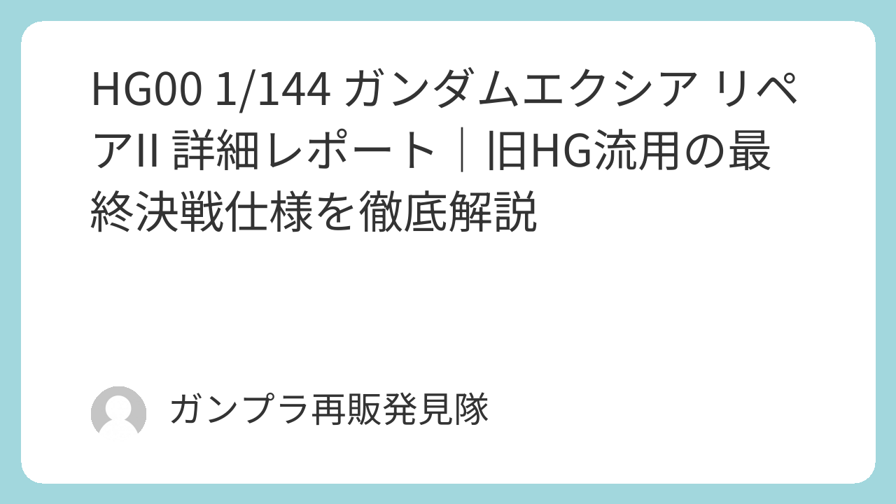 HG00 1/144 ガンダムエクシア リペアII 詳細レポート|旧HG流用の最終決戦仕様を徹底解説