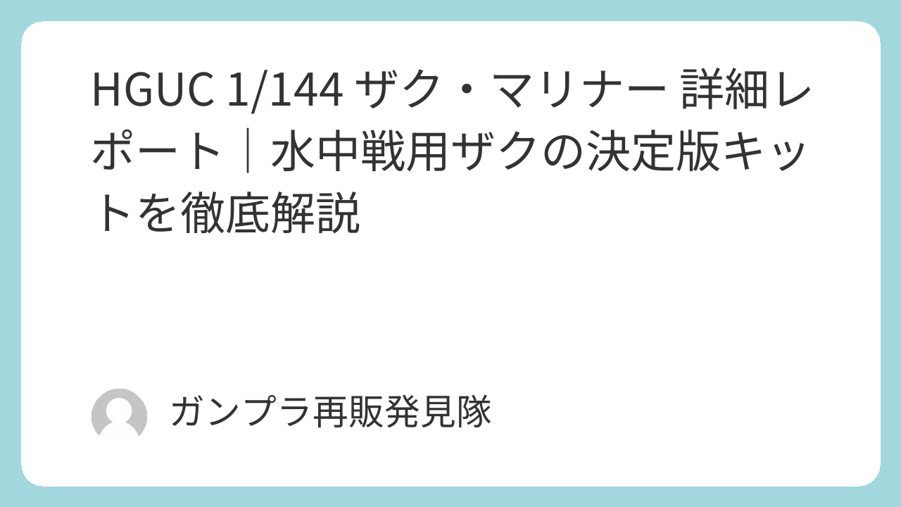 本記事では、HGUC ザク・マリナーの造形・可動・色分け・付属品・改造適性までを網羅的に解説し、どんなモデラーにおすすめできるキットなのかを詳しくレビューします。