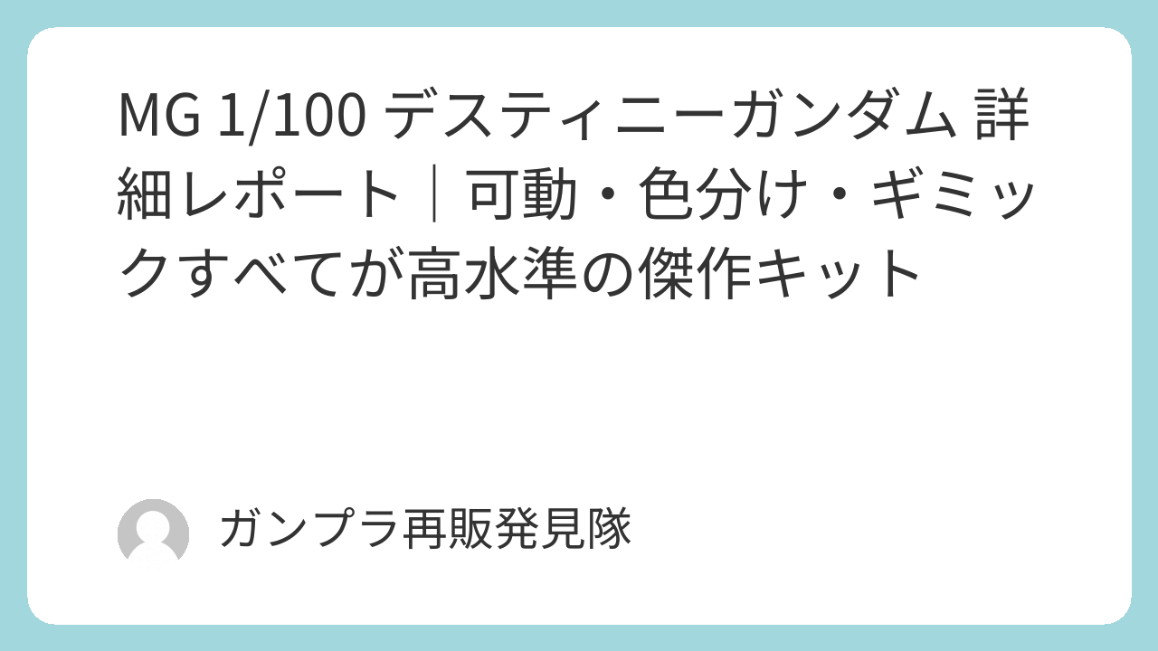 この記事では、MG 1/100 デスティニーガンダムの特徴・可動ギミック・付属品・モデリングのポイントなどを詳しく解説します。