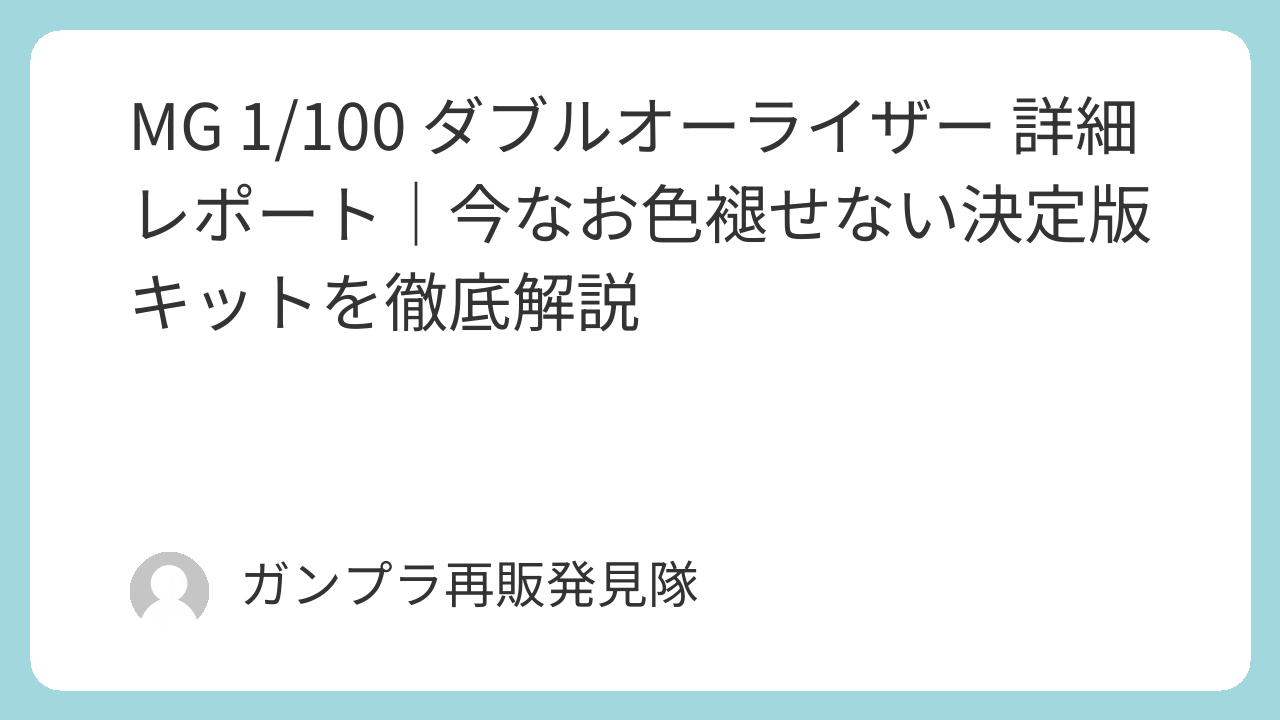 MGダブルオーライザーは、発売から10年以上が経過した今でも、造形・ギミック・情報量のすべてが高水準にまとまった名キットです。