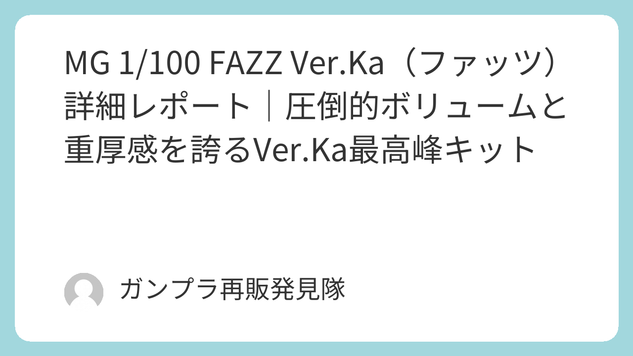 MG FAZZ Ver.Kaは、重厚感と完成度を極限まで高めたVer.Kaシリーズの集大成といえるキットです。