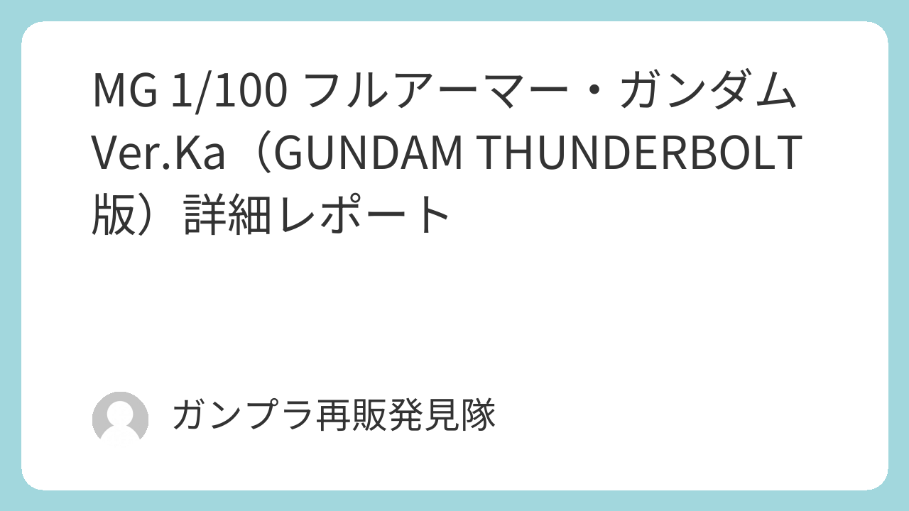 MG フルアーマー・ガンダム Ver.Ka(GUNDAM THUNDERBOLT版)は、“Ver.Kaらしさ”と“サンダーボルトの世界観”を極限まで融合させた野心的なモデルです。