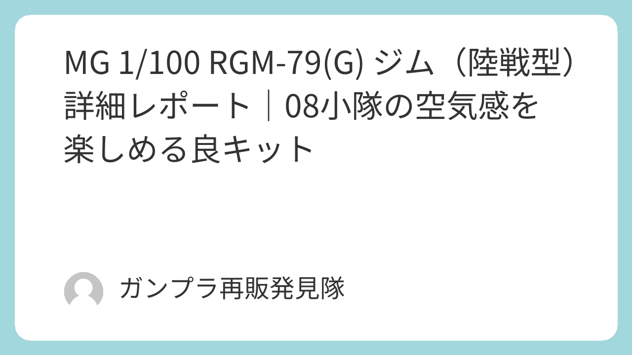 MG 1/100 RGM-79(G) ジム(陸戦型) 詳細レポート|08小隊の空気感を楽しめる良キット