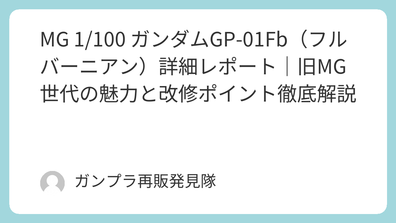 今回は、1998年に発売された「MG 1/100 13 ガンダムGP-02A(ガンダム試作2号機 サイサリス)」を、素組み視点から改造前提の楽しみ方まで、徹底的に解説します。