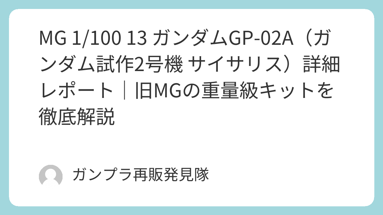 今回は、1998年に発売された「MG 1/100 13 ガンダムGP-02A(ガンダム試作2号機 サイサリス)」を、素組み視点から改造前提の楽しみ方まで、徹底的に解説します。
