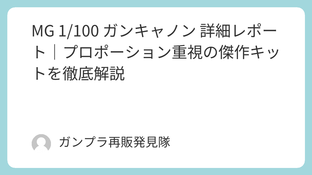 MG 1/100 ガンキャノン 詳細レポート|プロポーション重視の傑作キットを徹底解説