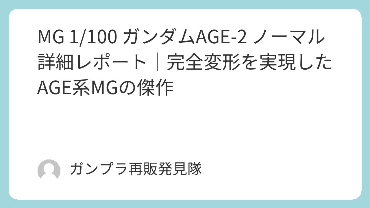 本記事では、MG 1/100 ガンダムAGE-2 ノーマルの魅力やギミック、可動性、弱点までを詳しくレビューしていきます。