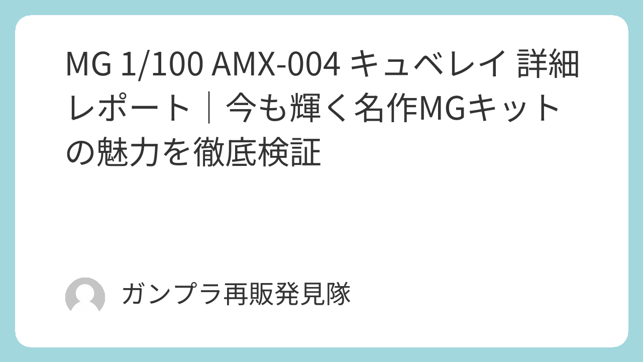 「キュベレイという機体の魅力を最も忠実に立体化したMG」として、今も語り継がれる名作です。