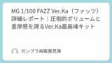 美しい造形・優れた色分け・扱いやすい構造の三拍子が揃い、MG初心者にもベテランにもおすすめできます。