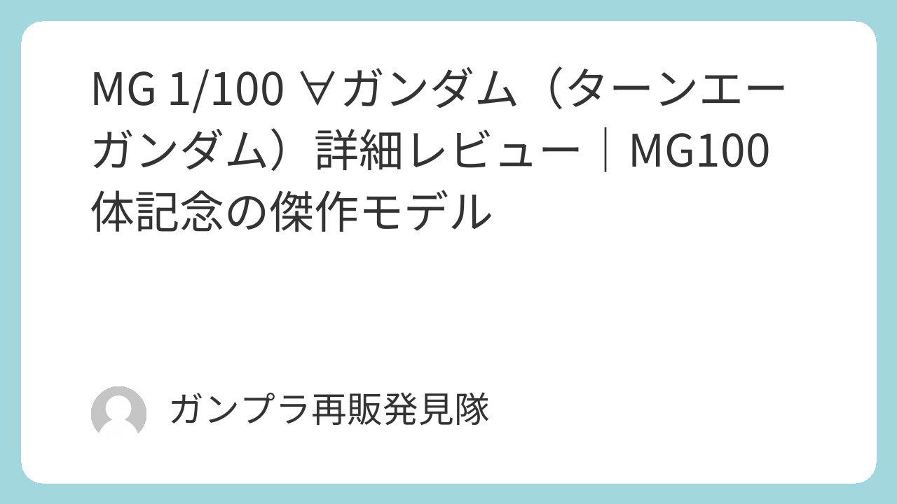 MG 1/100 ∀ガンダム(ターンエーガンダム)詳細レビュー|MG100体記念の傑作モデル