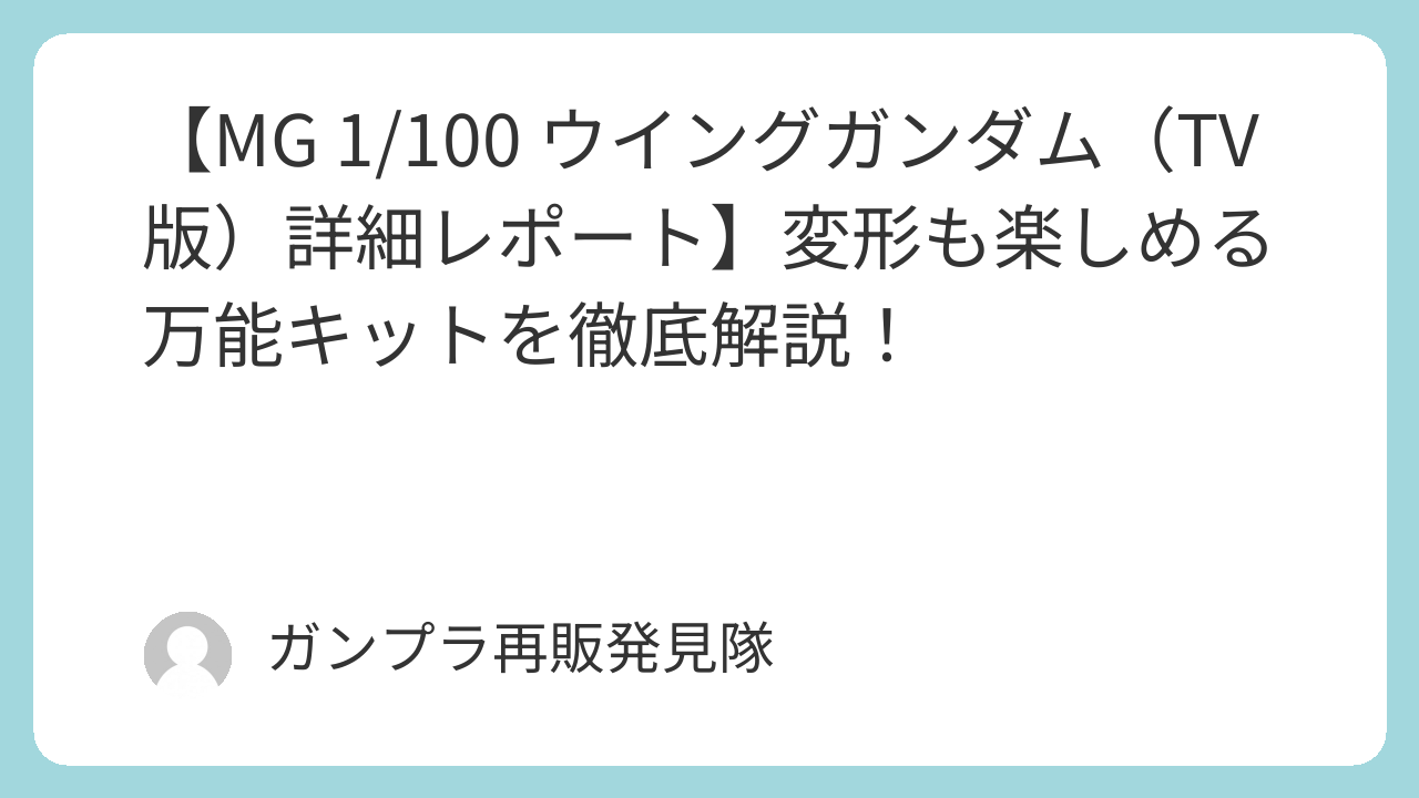 『新機動戦記ガンダムW』に登場する主役機「ウイングガンダム」。そのTV版をベースに、カトキハジメ氏によるリファインデザインで立体化されたのが、MG 1/100 No.132です。