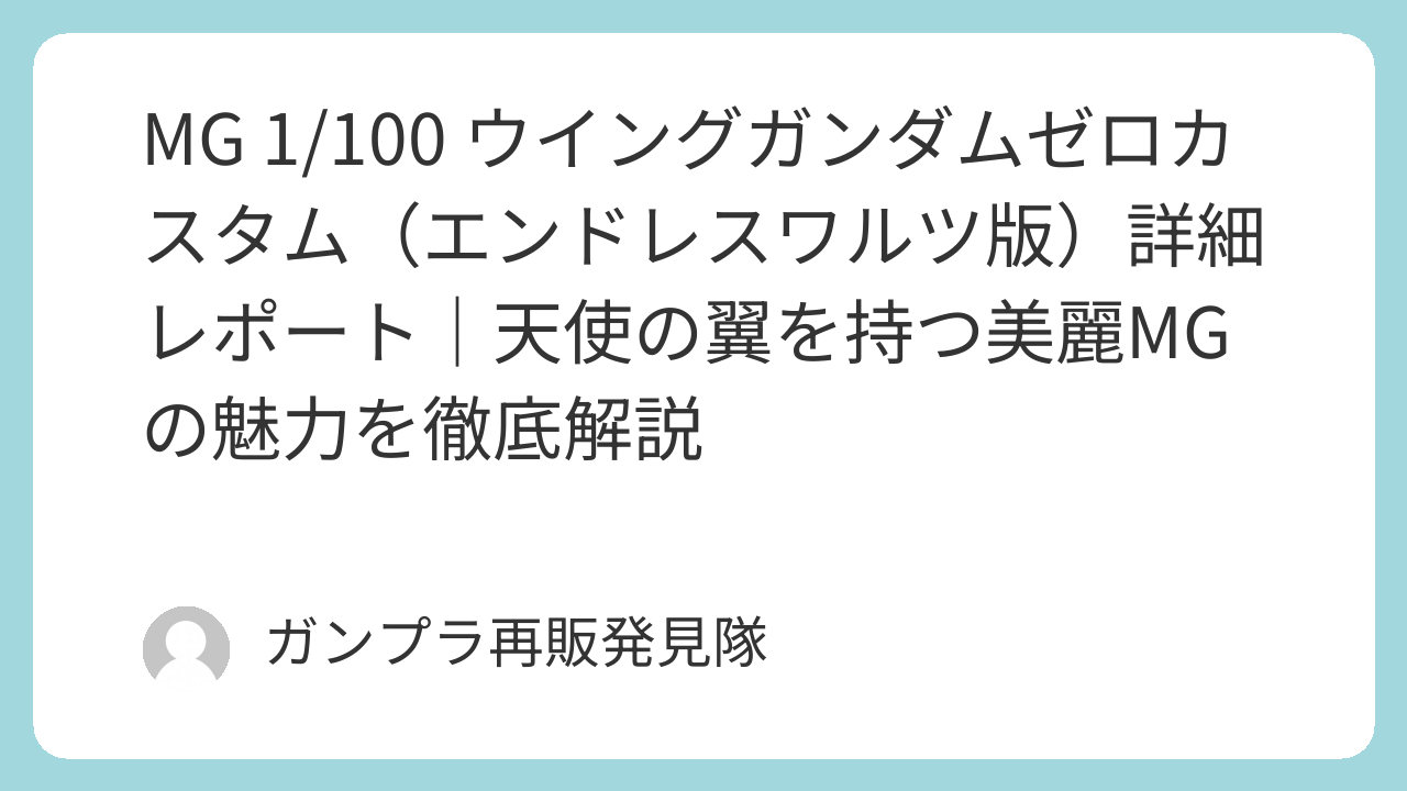 MG ウイングガンダムゼロカスタム(EW版)は、2004年発売ながら今も愛される名作キット。