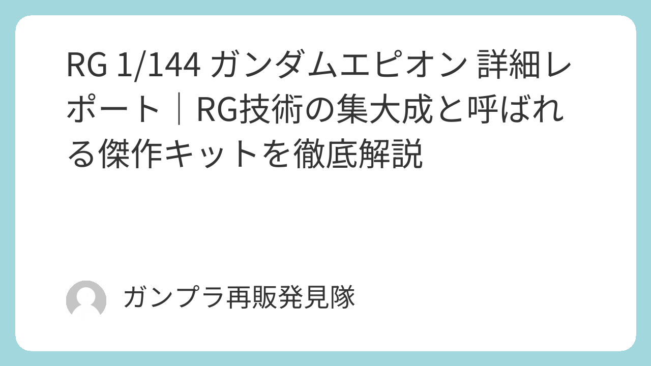 本記事では、RGガンダムエピオンの魅力を「造形・可動・ギミック・組み立てやすさ・市場評価」まで含めて徹底解説。