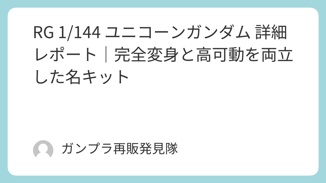 RG 1/144 ユニコーンガンダムは、完全変身・高可動・高密度ディテールというRGの魅力を最大限に詰め込んだ名キットです。