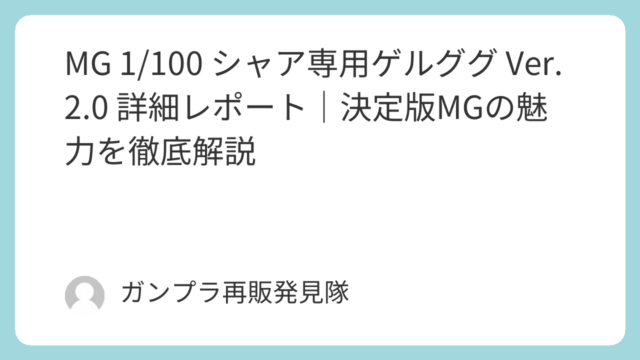 MG MG 1/100 シャア専用ゲルググ Ver.2.0 詳細レポート|決定版MGの魅力を徹底解説 MG 1/100 シャア専用ゲルググ Ver.2.0を徹底レビュー。可動・付属品・色分け・モデリング評価まで詳しく解説。今でも通用する決定版MGの実力とは? 2026.02.15 MG機動戦士ガンダム