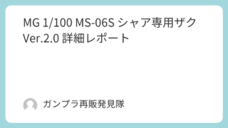 MG MG 1/100 MS-06S シャア専用ザク Ver.2.0 詳細レポート 「MG シャア専用ザク Ver.2.0」を徹底レビュー。革新的なモノアイ連動ギミックや優秀な可動性、システムインジェクション技術など、18年経っても傑作とされる理由を解説します。 2025.09.29 MG機動戦士ガンダム