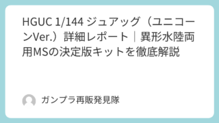 HGUC 1/144 ジュアッグ(ユニコーンVer.)を徹底レビュー。造形・可動・色分け・組みやすさまで詳しく解説。初心者にもおすすめの異形水陸両用MSキット。