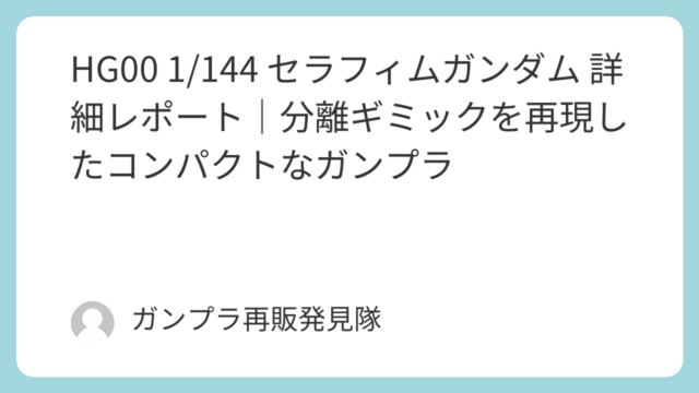 HG HG00 1/144 セラフィムガンダム 詳細レポート|分離ギミックを再現したコンパクトなガンプラ HG 1/144 セラフィムガンダムのレビュー記事。セラヴィーガンダムとの分離・合体ギミック、可動、付属品、モデリングポイントなどを詳しく解説します。 2026.03.18 HG機動戦士ガンダム00