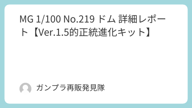 MG MG 1/100 No.219 ドム 詳細レポート【Ver.1.5的正統進化キット】 MG 1/100 ドム(No.219)を詳細レビュー。旧MGドムのスタイルを継承しつつ、可動・外装・色分けを現代化したVer.1.5的名作キットの魅力を解説します。 2026.02.15 MG機動戦士ガンダム