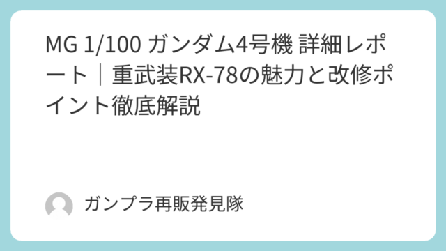 MG MG 1/100 ガンダム4号機 詳細レポート|重武装RX-78の魅力と改修ポイント徹底解説